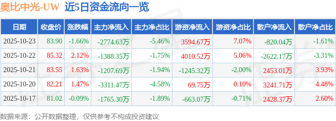 证券之星消息,截至2025年10月23日收盘,奥比中光(688322)报收于83.9元,下跌1.66%,换手率2.09%,成交量6.11万手,成交额5.08亿元。