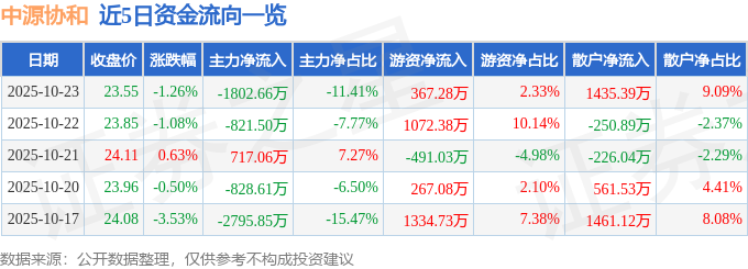 10月23日的资金流向数据方面,主力资金净流出1802.66万元,占总成交额11.41%,游资资金净流入367.28万元,占总成交额2.33%,散户资金净流入1435.39万元,占总成交额9.09%。