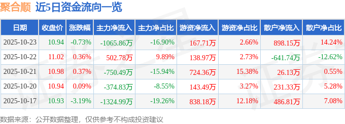 证券之星消息,截至2025年10月23日收盘,聚合顺(605166)报收于10.94元,下跌0.73%,换手率1.84%,成交量5.78万手,成交额6308.47万元。