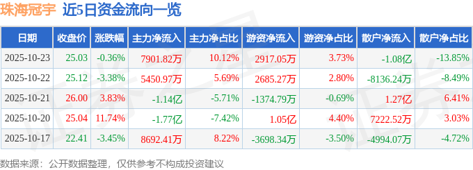 10月23日的资金流向数据方面,主力资金净流入7901.82万元,占总成交额10.12%,游资资金净流入2917.05万元,占总成交额3.73%,散户资金净流出1.08亿元,占总成交额13.85%。
