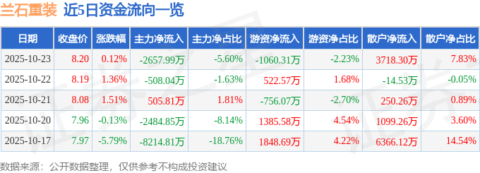 10月23日的资金流向数据方面,主力资金净流出2657.99万元,占总成交额5.6%,游资资金净流出1060.31万元,占总成交额2.23%,散户资金净流入3718.3万元,占总成交额7.83%。