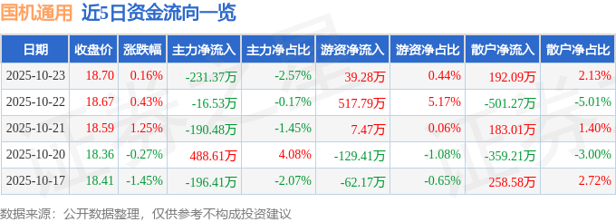 10月23日的资金流向数据方面,主力资金净流出231.37万元,占总成交额2.57%,游资资金净流入39.28万元,占总成交额0.44%,散户资金净流入192.09万元,占总成交额2.13%。