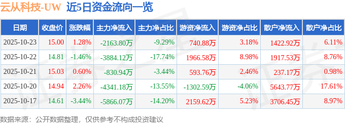 证券之星消息,截至2025年10月23日收盘,云从科技(688327)报收于15.0元,上涨1.28%,换手率1.9%,成交量15.85万手,成交额2.33亿元。
