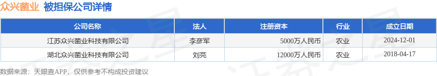 众兴菌业10月16日披露2笔对外担保,被担保公司2家。对外担保明细如下表: