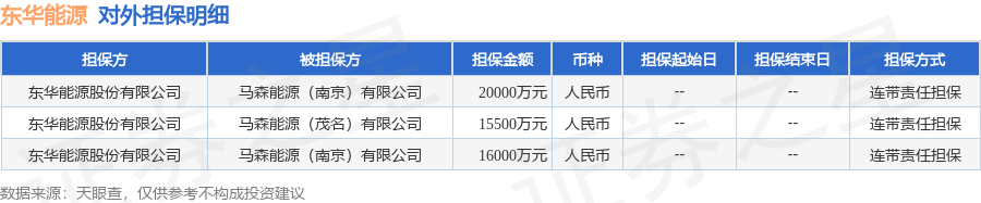 东华能源10月17日披露3笔对外担保,被担保公司2家。对外担保明细如下表: