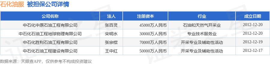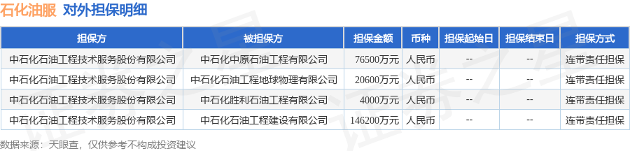 石化油服10月22日披露4笔对外担保,被担保公司4家。对外担保明细如下表: