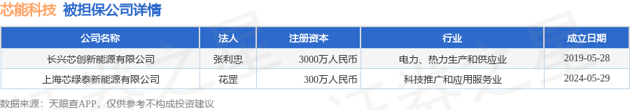 芯能科技10月22日披露2笔对外担保,被担保公司2家。对外担保明细如下表: