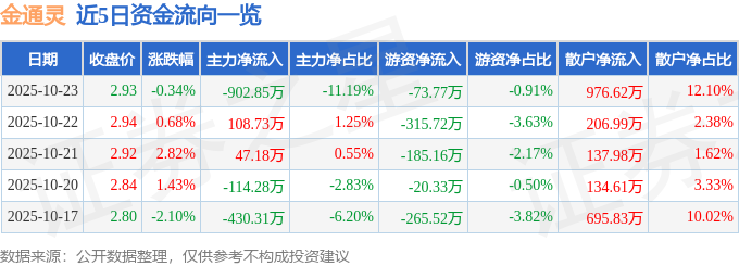 10月23日的资金流向数据方面,主力资金净流出902.85万元,占总成交额11.19%,游资资金净流出73.77万元,占总成交额0.91%,散户资金净流入976.62万元,占总成交额12.1%。
