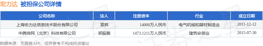 宏力达10月20日披露总额450万元(美元)的对外担保,被担保公司2家。本次担保的担保方式为连带责任担保。