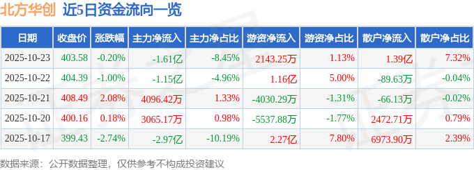 证券之星消息,截至2025年10月23日收盘,北方华创(002371)报收于403.58元,下跌0.2%,换手率0.66%,成交量4.75万手,成交额19.02亿元。