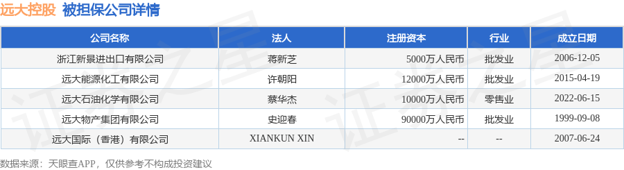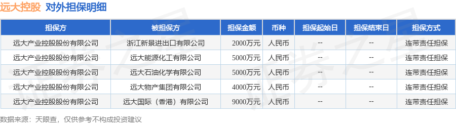 远大控股10月17日披露5笔对外担保,被担保公司5家。对外担保明细如下表: