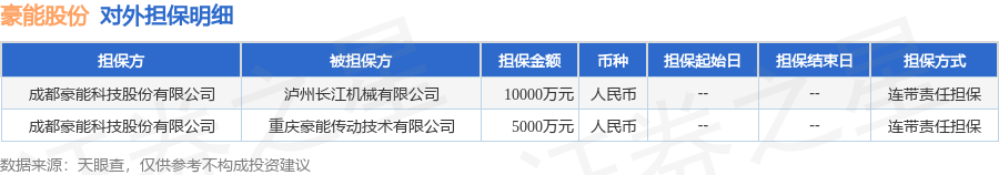 豪能股份10月16日披露2笔对外担保,被担保公司2家。对外担保明细如下表:
