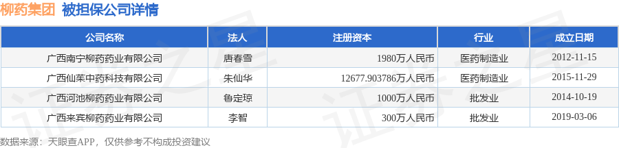 柳药集团10月14日披露10笔对外担保,被担保公司4家。对外担保明细如下表: