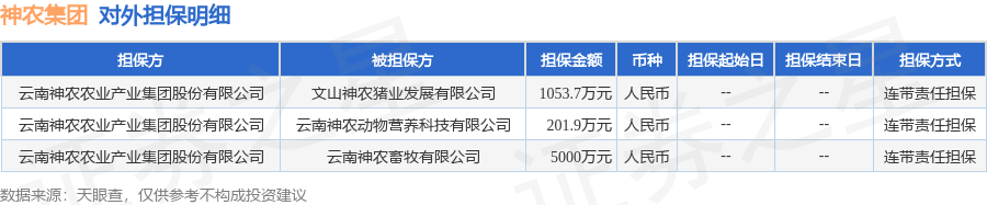 神农集团10月15日披露3笔对外担保,被担保公司3家。对外担保明细如下表: