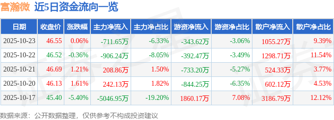 证券之星消息,截至2025年10月23日收盘,富瀚微(300613)报收于46.55元,上涨0.06%,换手率1.11%,成交量2.44万手,成交额1.12亿元。