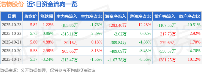 证券之星消息,截至2025年10月23日收盘,浩物股份(000757)报收于5.82元,上涨1.22%,换手率3.45%,成交量18.37万手,成交额1.05亿元。