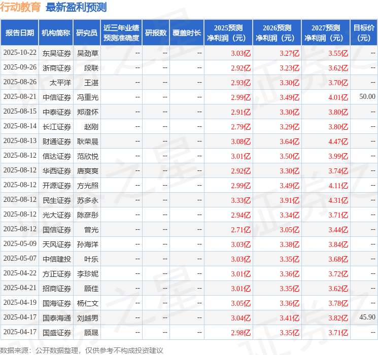 民生证券股份有限公司苏多永近期对行动教育进行研究并发布了研究报告《2025年三季报点评:“百校计划”成效显著,公司业绩强劲反弹》,给予行动教育买入评级。