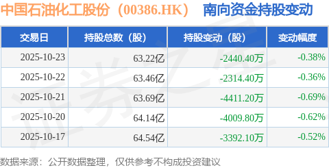 证券之星消息,10月23日南向资金减持2440.4万股中国石油化工股份(00386.HK)。近5个交易日中,获南向资金减持的有5天,累计净减持1.66亿股。近20个交易日中,获南向资金减持的有18天,累计净减持3.86亿股。截至目前,南向资金持有中国石油化工股份(00386.HK)63.22亿股,占公司已发行普通股的26.39%。