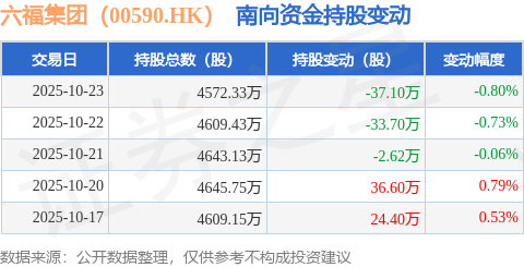 证券之星消息,10月23日南向资金减持37.1万股六福集团(00590.HK)。近5个交易日中,获南向资金减持的有3天,累计净减持12.42万股。近20个交易日中,获南向资金增持的有11天,累计净增持28.48万股。截至目前,南向资金持有六福集团(00590.HK)4572.33万股,占公司已发行普通股的7.77%。