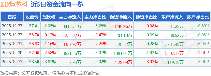 证券之星消息,截至2025年10月23日收盘,XD炬芯科(688049)报收于57.41元,下跌2.03%,换手率4.16%,成交量7.28万手,成交额4.13亿元。