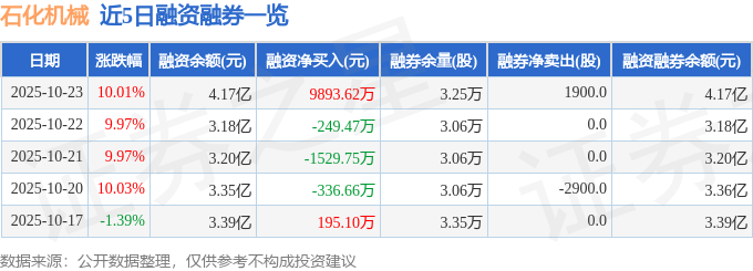 证券之星消息,截至2025年10月23日收盘,石化机械(000852)报收于9.34元,上涨10.01%,已连续涨停4天,换手率28.76%,成交量272.02万手,成交额25.31亿元。