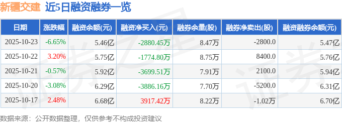 证券之星消息,截至2025年10月23日收盘,新疆交建(002941)报收于18.38元,下跌6.65%,换手率12.46%,成交量90.92万手,成交额16.77亿元。