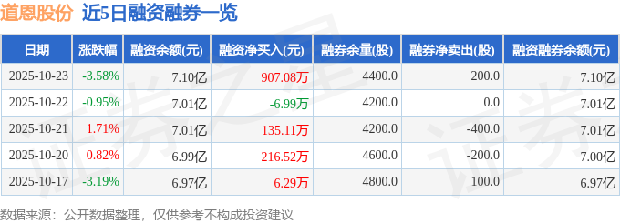 道恩股份融资融券信息显示,融资方面,当日融资买入2198.46万元,融资偿还1291.38万元,融资净买入907.08万元。融券方面,融券卖出200.0股,融券偿还0.0股,融券余量4400.0股,融券余额11.5万元。融资融券余额7.1亿元。