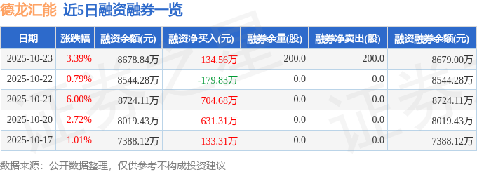 德龙汇能融资融券信息显示,融资方面,当日融资买入1472.71万元,融资偿还1338.14万元,融资净买入134.56万元。融券方面,融券卖出200.0股,融券偿还0.0股,融券余量200.0股,融券余额0.16万元。融资融券余额8679.0万元。
