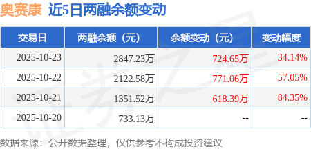证券之星消息,10月23日,奥赛康(002755)融资买入1255.04万元,融资偿还530.39万元,融资净买入724.65万元,融资余额2847.23万元,近3个交易日已连续净买入累计2114.1万元。