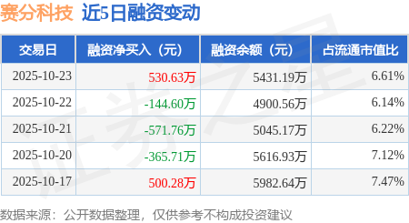证券之星消息,10月23日,赛分科技(688758)融资买入1256.52万元,融资偿还725.89万元,融资净买入530.63万元,融资余额5431.19万元,近20个交易日中有11个交易日出现融资净买入。