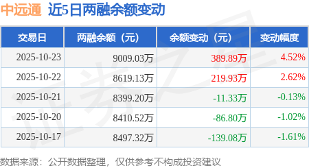 证券之星消息,10月23日,中远通(301516)融资买入825.89万元,融资偿还435.99万元,融资净买入389.89万元,融资余额9009.03万元。