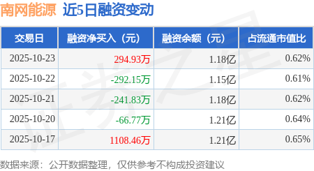 证券之星消息,10月23日,南网能源(003035)融资买入1107.18万元,融资偿还812.25万元,融资净买入294.93万元,融资余额1.18亿元。