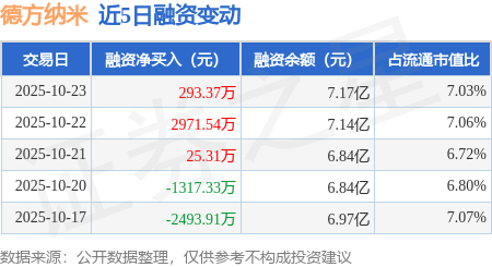 证券之星消息,10月23日,德方纳米(300769)融资买入5439.85万元,融资偿还5146.48万元,融资净买入293.37万元,融资余额7.17亿元,近3个交易日已连续净买入累计3290.22万元。