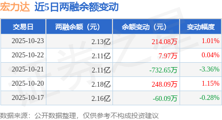 证券之星消息,10月23日,宏力达(688330)融资买入1301.17万元,融资偿还1090.05万元,融资净买入211.12万元,融资余额2.13亿元。