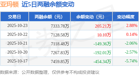 证券之星消息,10月23日,亚玛顿(002623)融资买入446.44万元,融资偿还241.24万元,融资净买入205.2万元,融资余额7333.58万元。