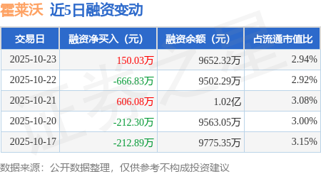 证券之星消息,10月23日,霍莱沃(688682)融资买入741.17万元,融资偿还591.14万元,融资净买入150.03万元,融资余额9652.32万元,近20个交易日中有11个交易日出现融资净买入。