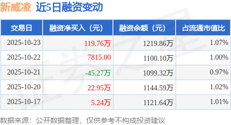 证券之星消息,10月23日,新威凌(920634)融资买入232.12万元,融资偿还112.36万元,融资净买入119.76万元,融资余额1219.86万元。