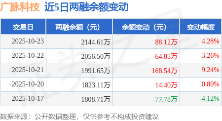 证券之星消息,10月23日,广脉科技(920924)融资买入151.18万元,融资偿还63.06万元,融资净买入88.12万元,融资余额2144.61万元,近3个交易日已连续净买入累计321.51万元。