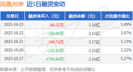 证券之星消息,10月23日,凤凰光学(600071)融资买入1758.44万元,融资偿还1673.9万元,融资净买入84.55万元,融资余额3.16亿元,近20个交易日中有12个交易日出现融资净买入。