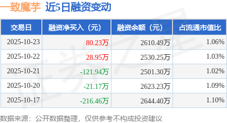 证券之星消息,10月23日,一致魔芋(920273)融资买入208.16万元,融资偿还127.92万元,融资净买入80.23万元,融资余额2610.49万元。