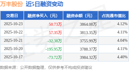 证券之星消息,10月23日,万丰股份(603172)融资买入290.83万元,融资偿还240.1万元,融资净买入50.73万元,融资余额3864.08万元,近20个交易日中有11个交易日出现融资净买入。