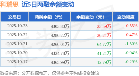 证券之星消息,10月23日,科瑞思(301314)融资买入231.43万元,融资偿还207.84万元,融资净买入23.59万元,融资余额4303.8万元,近20个交易日中有12个交易日出现融资净买入。