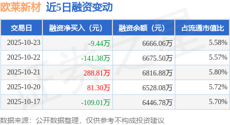 证券之星消息,10月23日,欧莱新材(688530)融资买入205.46万元,融资偿还214.9万元,融资净卖出9.44万元,融资余额6666.06万元。