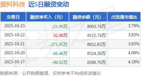 证券之星消息,10月23日,爱科科技(688092)融资买入118.89万元,融资偿还140.89万元,融资净卖出21.99万元,融资余额8093.74万元。