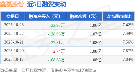 证券之星消息,10月23日,鑫磊股份(301317)融资买入220.07万元,融资偿还253.02万元,融资净卖出32.95万元,融资余额1.06亿元。