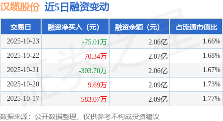 证券之星消息,10月23日,汉缆股份(002498)融资买入717.62万元,融资偿还792.63万元,融资净卖出75.01万元,融资余额2.06亿元。