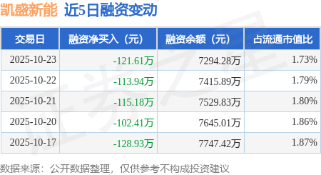 证券之星消息,10月23日,凯盛新能(600876)融资买入240.78万元,融资偿还362.39万元,融资净卖出121.61万元,融资余额7294.28万元。