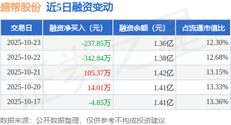 证券之星消息,10月23日,盛帮股份(301233)融资买入412.9万元,融资偿还650.74万元,融资净卖出237.85万元,融资余额1.36亿元。