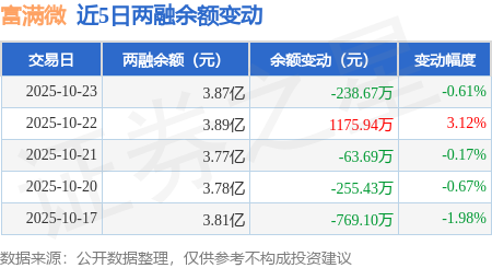 证券之星消息,10月23日,富满微(300671)融资买入1932.68万元,融资偿还2176.61万元,融资净卖出243.94万元,融资余额3.86亿元。