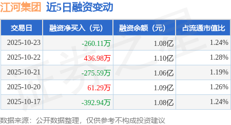 证券之星消息,10月23日,江河集团(601886)融资买入238.03万元,融资偿还498.15万元,融资净卖出260.11万元,融资余额1.08亿元。